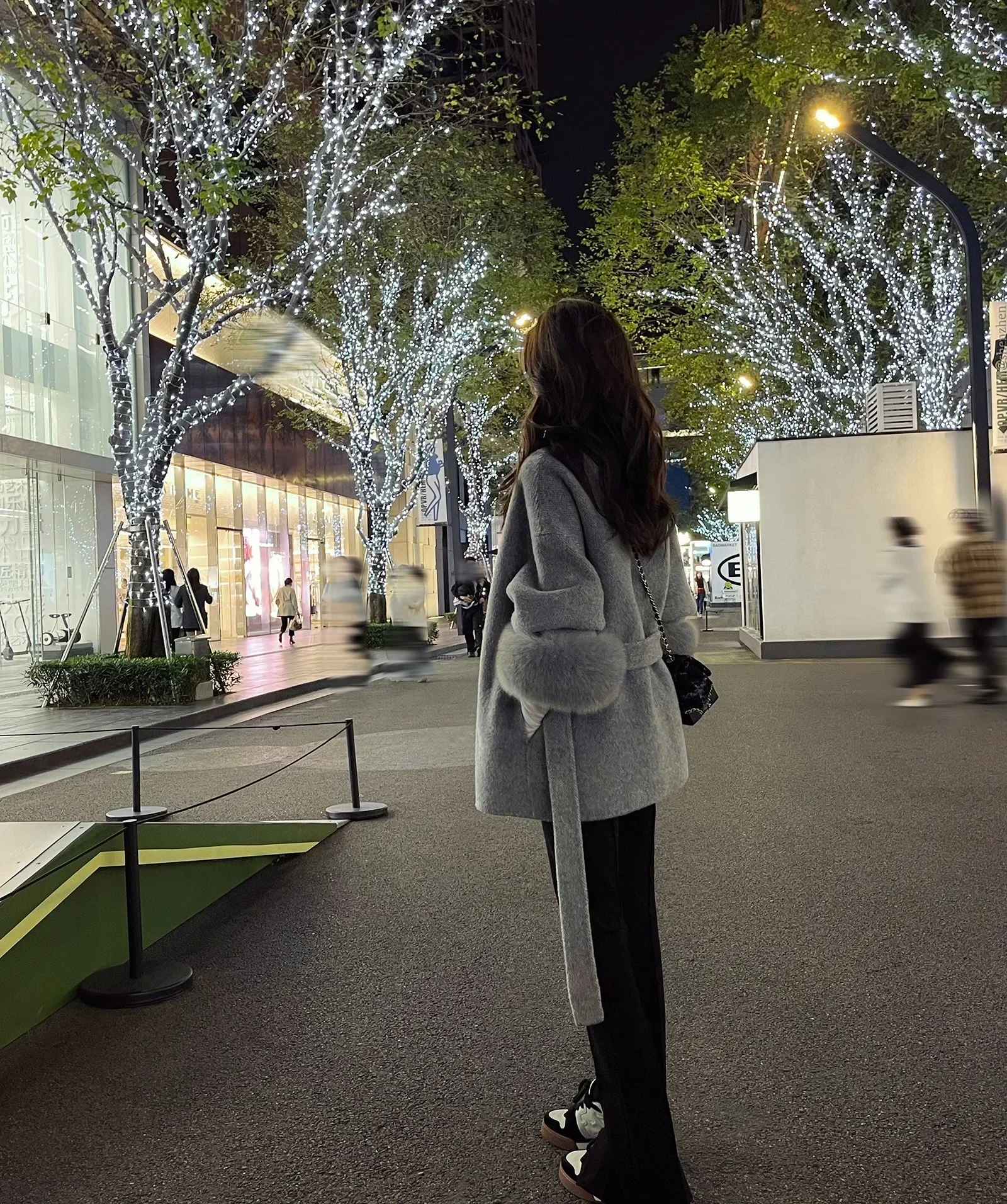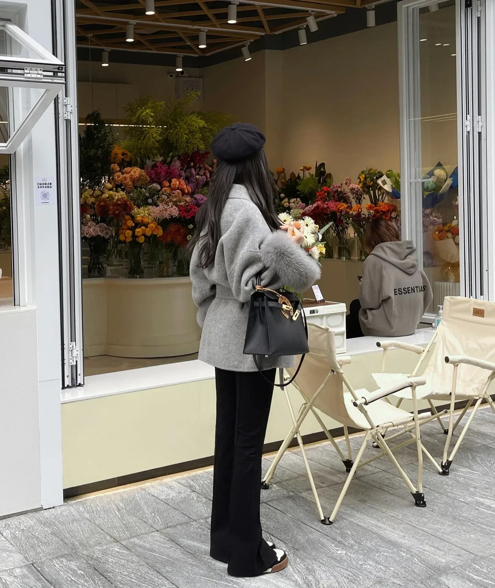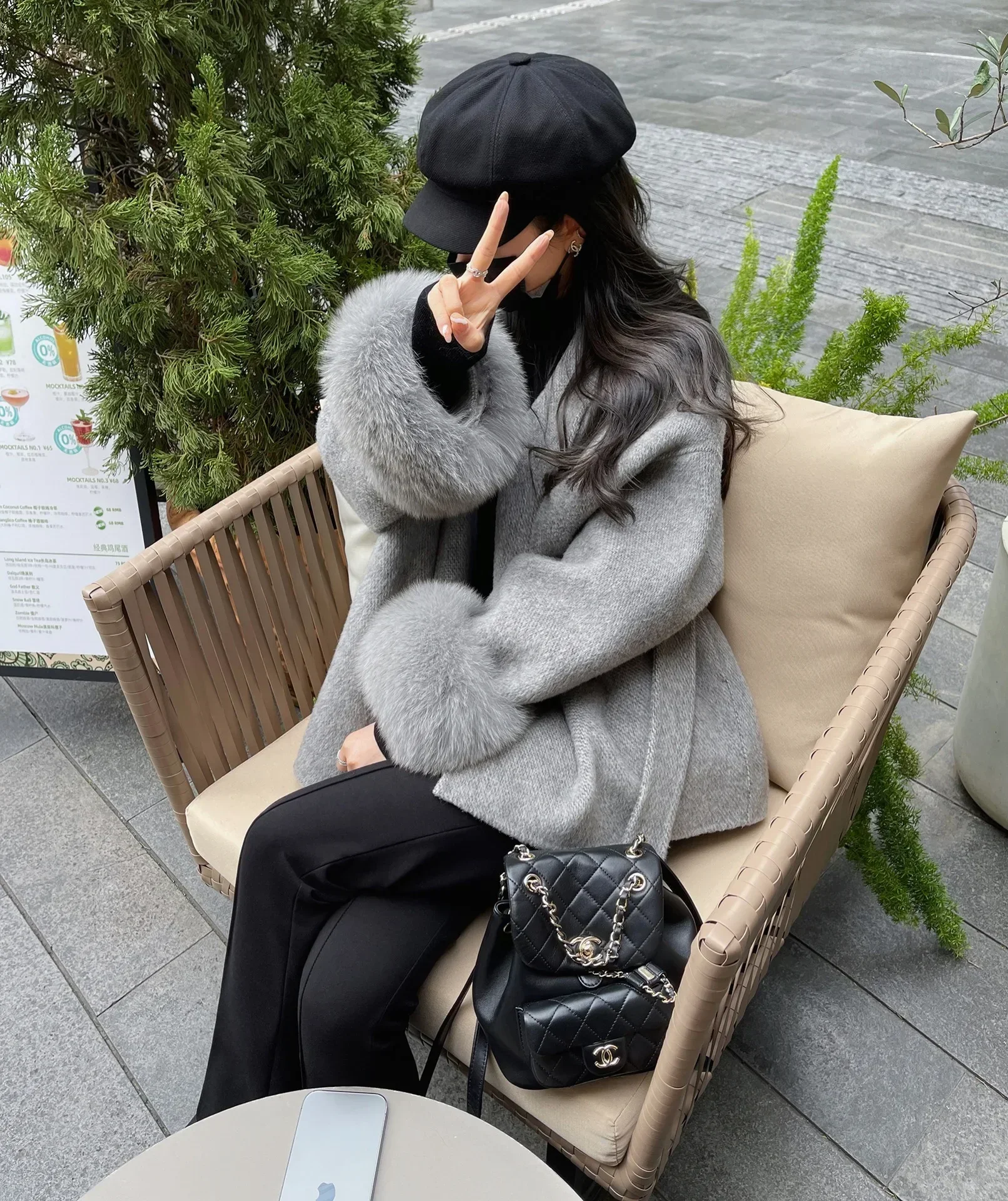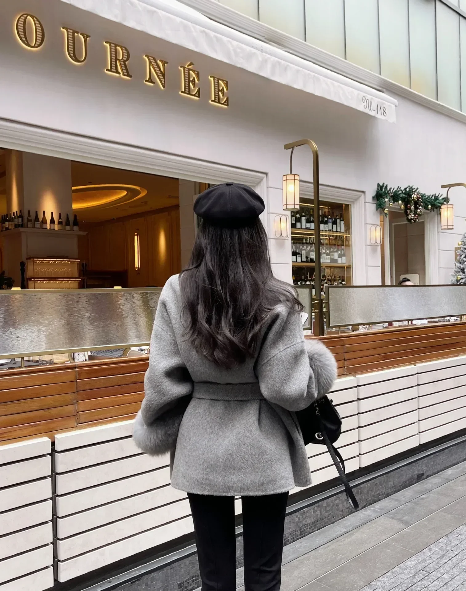 Women's Wool & Faux Fur Coat | Double-Sided Short Jacket
